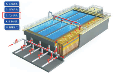 ◆反硝化深床濾池反沖洗:采用氣水聯合沖洗的方式;
